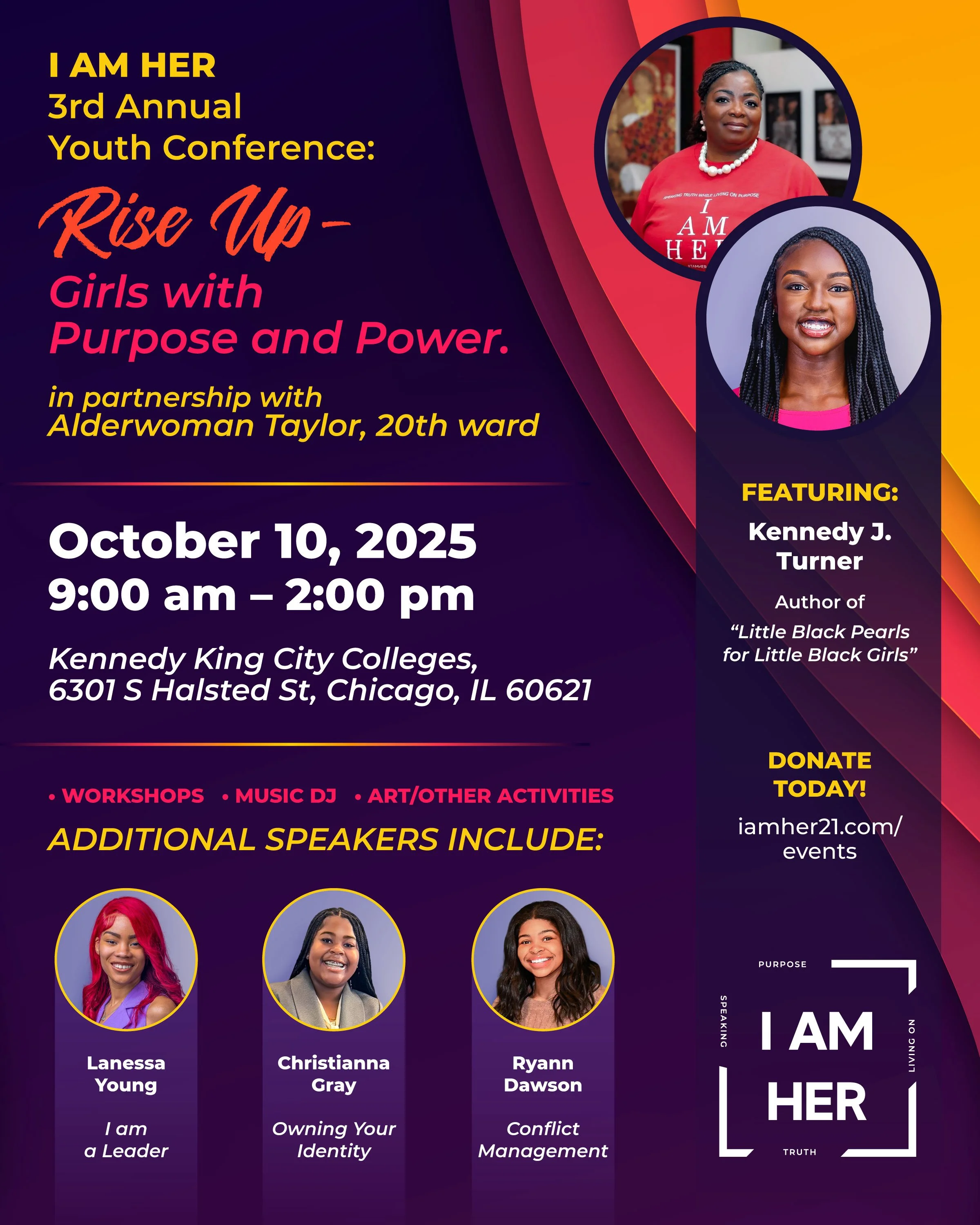 The I AM HER Foundation will host its Annual Spring Fundraiser event on Saturday, March 16, 2024, “Black Women In Leadership” at City Point Loft in Bronzeville Illinois.